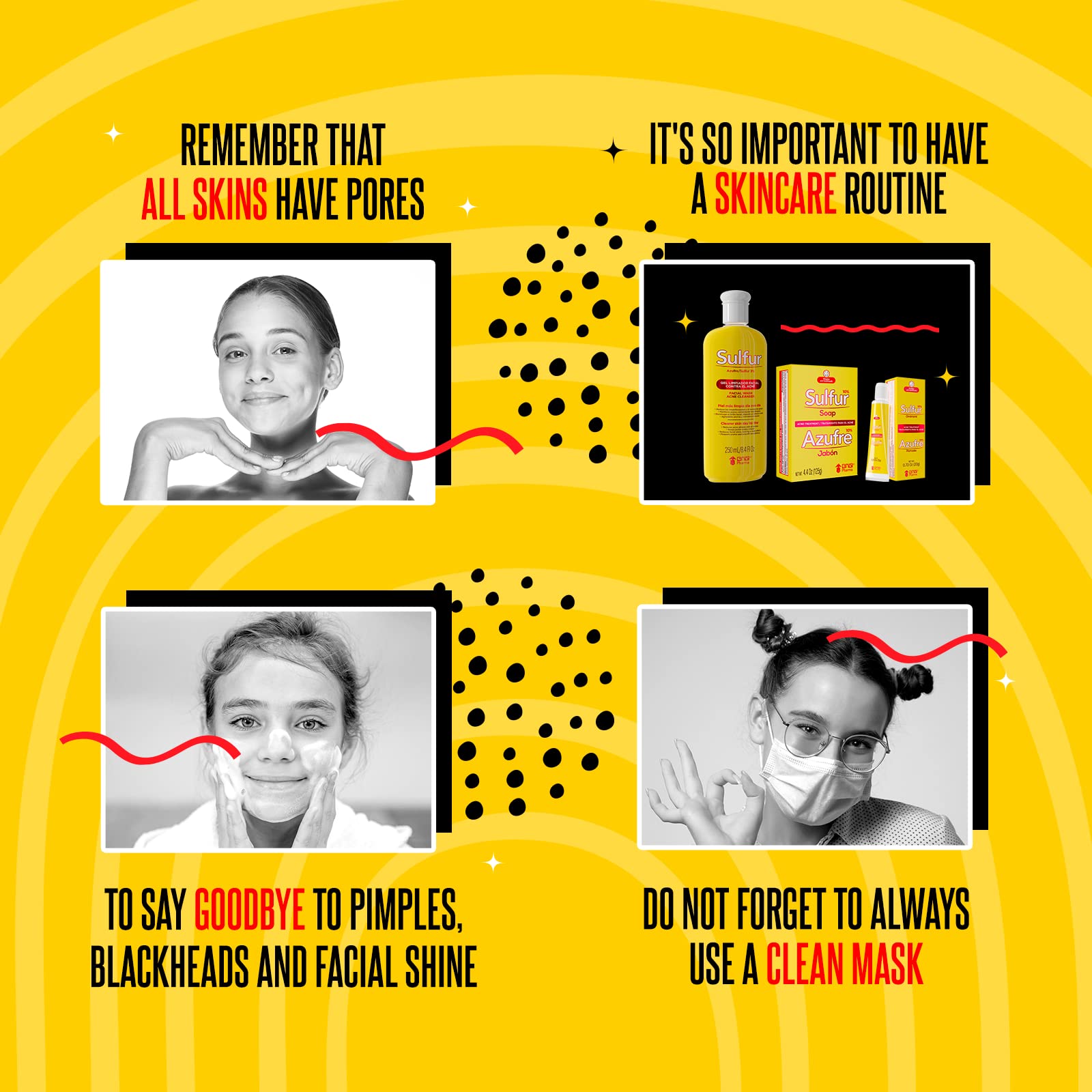 - Grisi Sulfur reduces facial shine, leaving a matte effect. Our soap will help you reduce pimples and acne by removing bacteria and absorbing excess oil by unclogging the skin's pores.