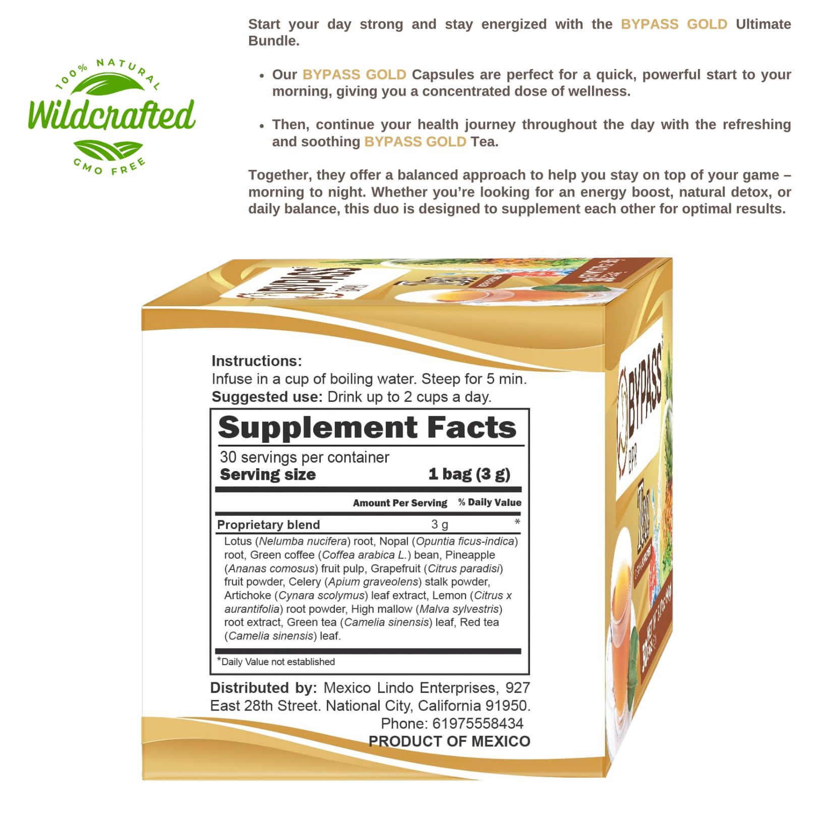 Bypass Bpri - Herbal Tea 30 Tea Bags 0.11oz (3g) | Net Wt. 3.2oz | Tea Based Lotus, Nopal, Green Coffee, Pineapple, Grapefruit.